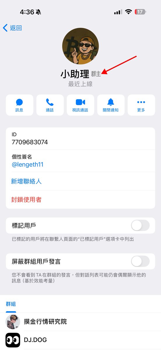 如果進去之後「群主」那個字還在,那就是假的,因為那只是圖片,真的群主在個人主頁那裡壓根就不會顯示「群主」兩個字。