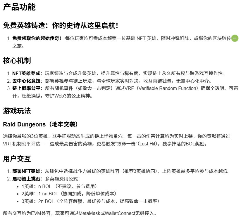 第三步,参与 Raid Dungeons 赢 $BOL ,选择英雄 → 进入地牢 → 对战怪物,每次攻击实时上链,VRF 机制确保公平,造成最高伤害或触发“致命一击”即可赢取 $BOL 奖励