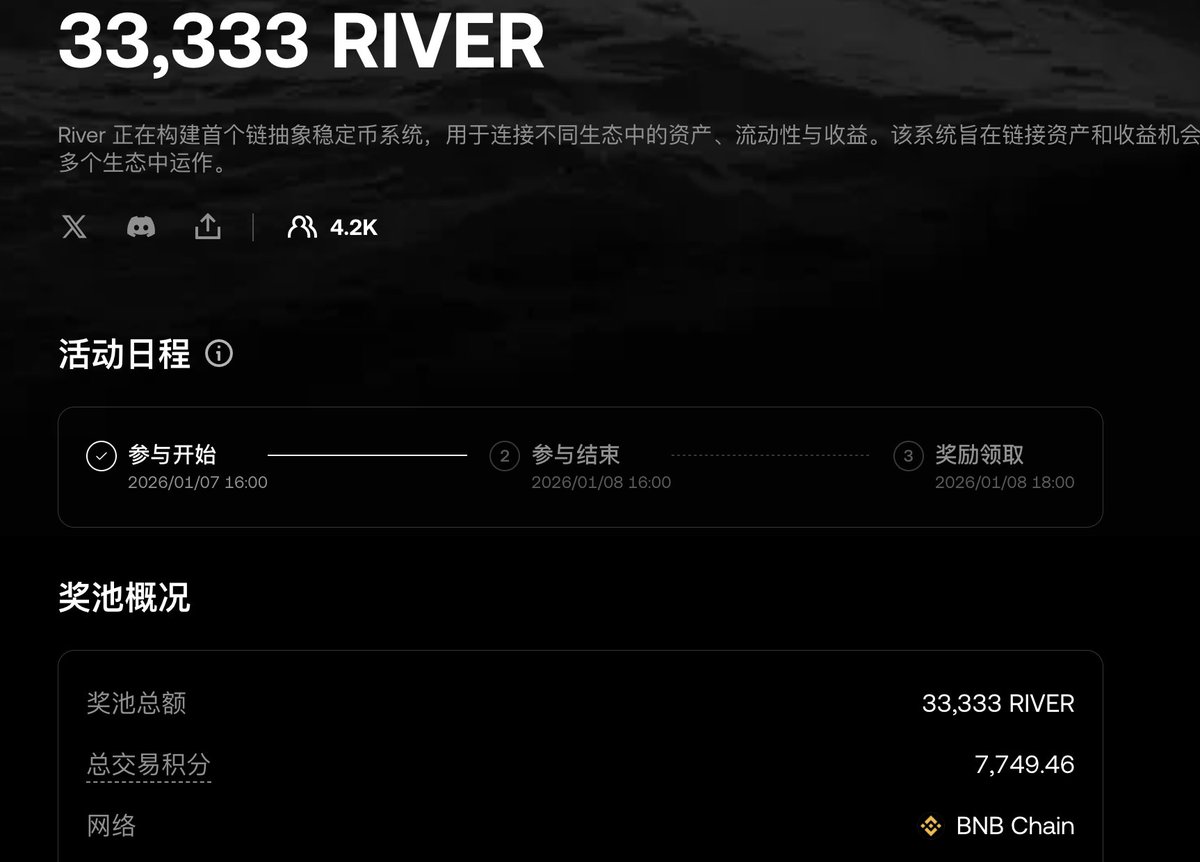 OKX Boost 新年第二个项目来了。每错就是一直拉的 @River4fun ,25年最大的黑马项目。Tge至今也有近20X涨幅。无奈很多人不看好,就是一直拉。 这次活动总共33,333 $River ,按照现在18.5U的价格,总价值超600,000U 资格:200U余额+500U交易 还没注册的可以走我链接,省20%手续费。 :https://t.co/xfQnPn0gCN