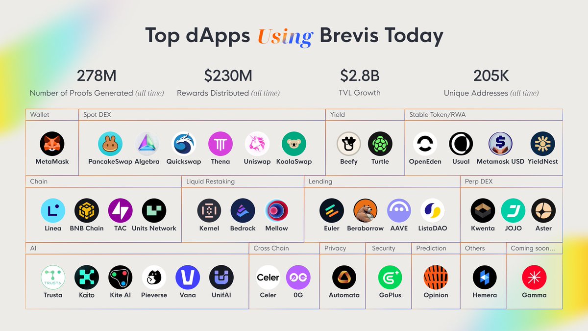 🔸BNB HODLer 第 60 期 $BREV :链下执行巨量计算,链上验证结果可信。 @brevis_zk 意识到,不是什么都要硬塞进合约。历史数据扫描、复杂策略计算、跨链状态判断、甚至 AI 推理——这些一旦强行上链,不是 gas 爆炸,就是只能依赖中心化预言机,反而更脆弱。 Brevis 的逻辑很清晰,任何你没法在链上跑的程序或数据查询,都可以链下执行;但是!执行结果必须通过 ZK 证明,让合约在毫秒级完成验证。 你不用相信某个服务器,只需要相信数学。 ProverNet 上线后,定位更明确,Brevis 已经是一个可验证算力市场。 Pico zkVM 负责“什么都能算”,ZK Data Coprocessor 负责链上历史与跨链数据,ProverNet 负责把这些需求,和真实算力、真实成本匹配起来。 而 $BREV, 本质上就是这套网络里结算、抵押、激励与治理的统一载体。 从 Uniswap、PancakeSwap 的智能费率,到 Euler、Usual、Linea 的激励与分发,很多似乎是黑箱的链上逻辑,其实已经在 Brevis 的证明体系里跑了一段时间了。 ZK 正在变成一层可被反复调用的基础设施。当链上应用百花齐放,可验证计算是绕不开的底层。 🔸返佣链接 https://t.co/mDjdJ85foD
