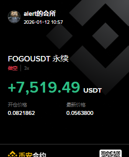 再说交易: $BREV 0.338 已经平完。0.517空到0.338 。依据是预售无价差。 $FOGO 继续拿着,这才算赢,昨天不算赢,可惜只有头仓,浮盈7500。 挂短止损止损保利润。 上周四的闭门会议捋了捋黄金逻辑,晚上在看看黄金走势如何。 去年9月,我因为清仓出去旅游了,没参与bsc的行情。 我自己更容易就跑出来的标上一定仓位,如去年的 $giggle 的交易,22买160卖,无马后炮。 现在开始体验前期的P,P亏了6.4个bnb,不过还挺好玩的。 从来没有如此关心过一个女生,----@nina_rong