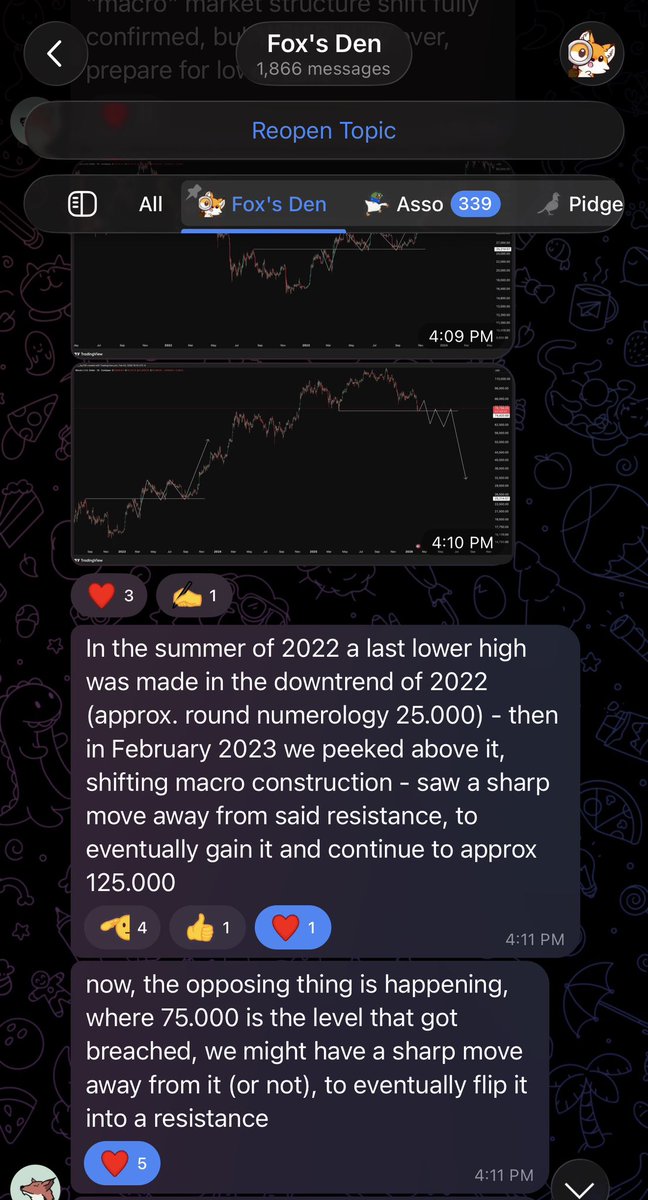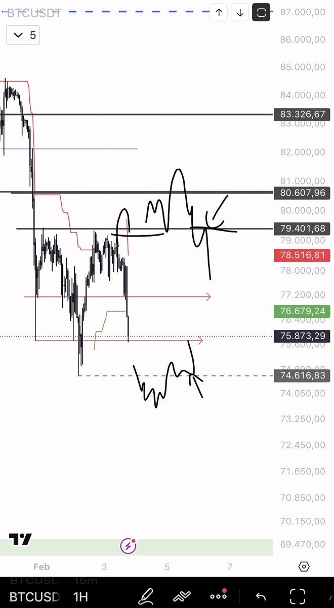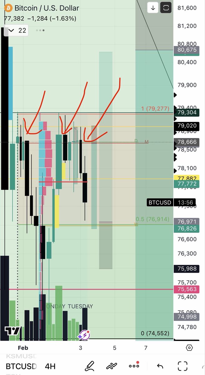 Move sl to break even on trade 1. Unless Trump signs today, please book leverage longs at the daily open 78666. We need a catalyst to break through this area. If he signs, the next stop is 80.6k.