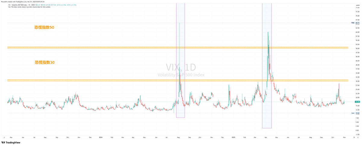 科技股仍然是投资者追捧的目标,亚马逊和特斯拉今天的走势都不错,很难想象亚马逊今天上涨了近 10% ,整体的QQQ上涨了接近 0.5% ,代表恐慌指数的 VIX 虽然有小幅上涨,但收盘的时候停留在了 17.44,说明投资者的情绪仍然非常的稳定。美股,尤其是科技股和 $BTC 的相关性仍然是很高的,今天随着美股的反弹 Bitcoin 回到了11万美元。