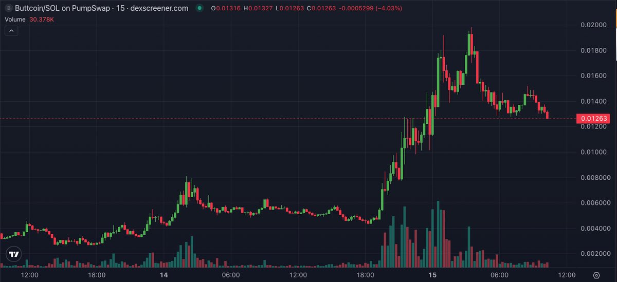 $BUTT broke clean out of accumulation with a textbook impulse leg. Chart shows full volume confirmation on every green candle. Topped near $0.02, retracing now into first key support at $0.0125–0.013. If this level holds, next extension leg could get spicy. Smells like the dip that traps late sellers before the real send. 🔗 DEX: https://t.co/7eZjcuUCfK