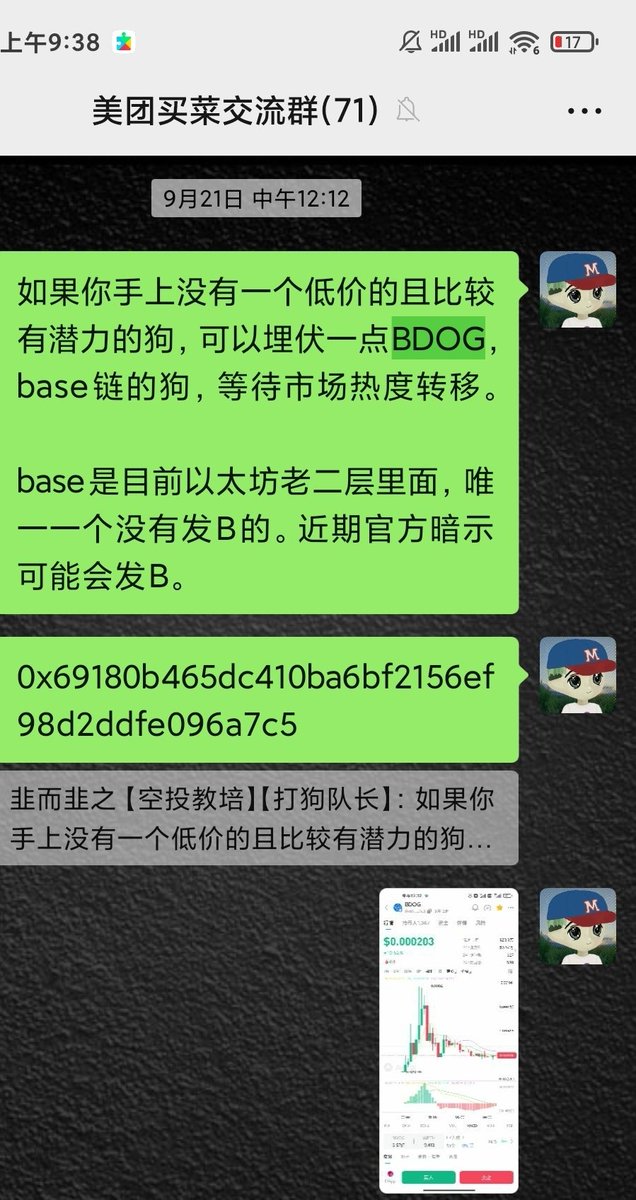 奉劝所有还在关注 @Meta_eth168 的人赶紧把他拉黑了 这逼老早就被我拉黑了 之前这傻逼小红书盗图人家的帕拉梅拉提车图装作自己的到处群发并配文感谢加密 昨晚开盘被人逮住还死不承认 行 求锤是吧 那我就锤一下你 链上是不会骗人的 首先meta公开称自己买了30b的 $bdog 我根据时间金额找到了 是这个地址:0x2f7082291a33235421200ba34ea5d54c80c519e9 并且这个地址可以确定是meta的地址 因为和他交易所充值地址也有交互的 然后重点来了 在他购买之前 有个地址给他转了一千万个 $bdog 链接如下https://t.co/NkFJ9unCYz 转币给他的地址是一个全新地址尾号为eA0b 并且资金来源是一个尾号为b115的交易所钱包 时间是9月8号的凌晨1点18分15秒 有图为证 然后让我们再看看 $bdog 的dev地址https://t.co/uJsjT3opqR 同样是来自b115的交易所钱包的全新地址 时间是9月8好凌晨1点17分50秒 然后在1点22分 dev开了这个盘 然后一堆差不多时间同样资金来源的地址买入这个币 话说到这里 相信大家都能懂了 就算这个盘不是meta开的 他也是股东之一 并且这种事情并不是第一次了 我可以很肯定的告诉大家 这个逼有一个小团伙在经常搞这种事情 所以远离他 拉黑他 是最好的选择