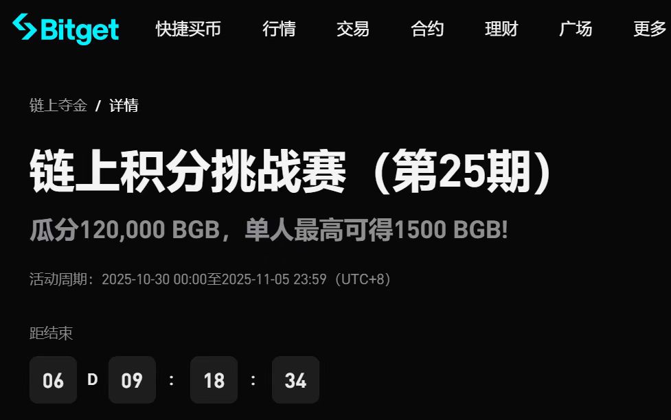 今天刷 #Bitget 活动页时,看到第25期链上积分挑战赛又开了。说实话,这个系列我已经跟了好几期了开始只是想碰碰运气拿点 $BGB ,现在反而养成了一个习惯。