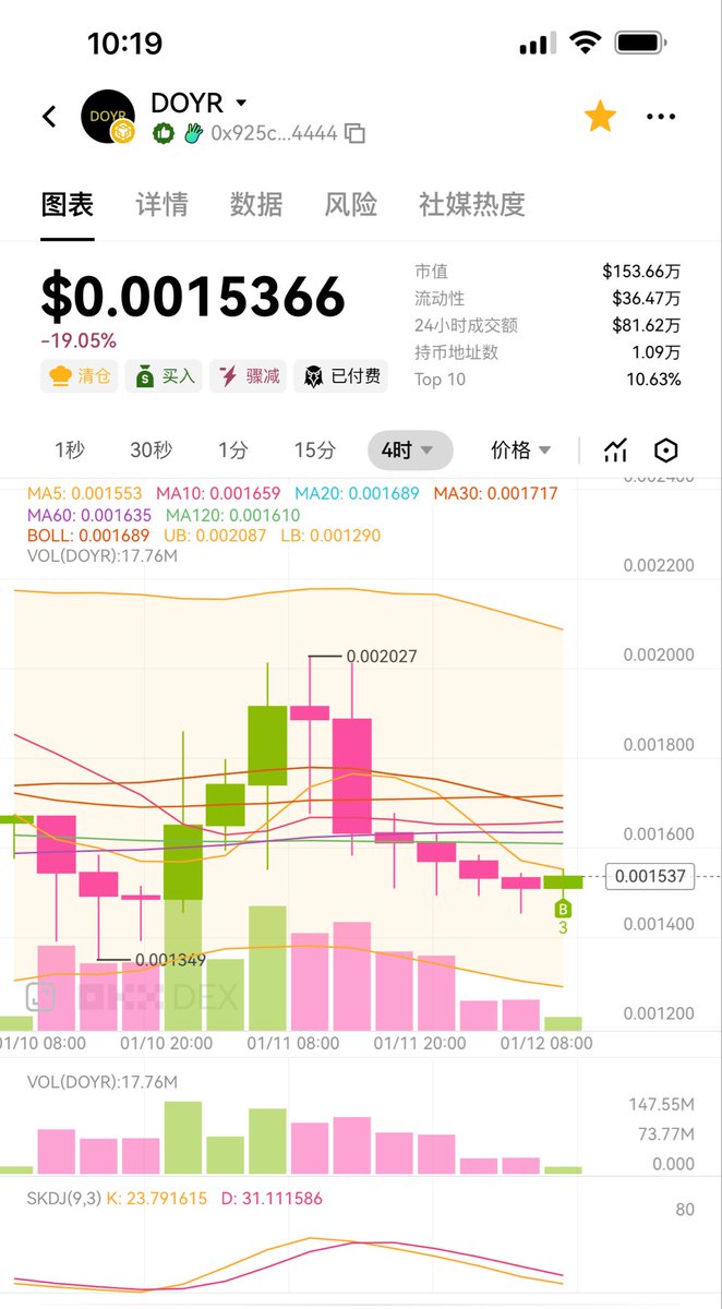巴部长亲自部署第三次1500U策略执行 我挑选了两个币 分别是 $DOYR 和 $BIBI DOYR 150万 BIBI 380万 每个各买入1500U 因人而异 你可以选择适合你的不同额度 买入逻辑不用讲了 执行就完事儿了 两个币中只要有一个翻倍 策略便成功 如果说昨天的第二次策略成功机率只有50% 那么第三次策略我可以笃定的讲 本次策略成功的概率为100% 7天以后揭晓答案🙏