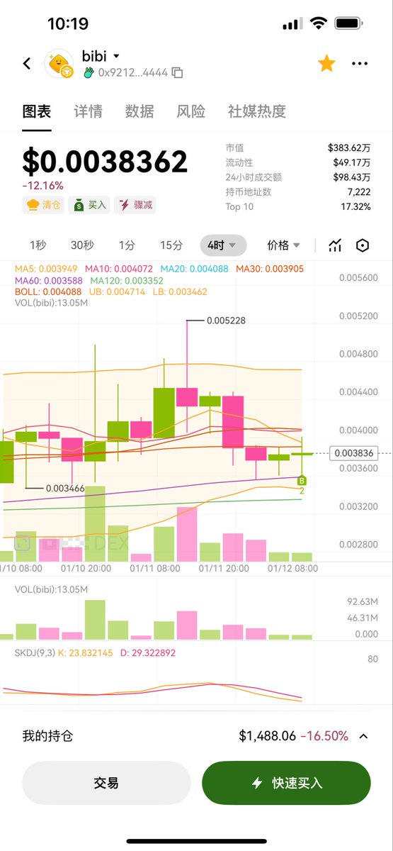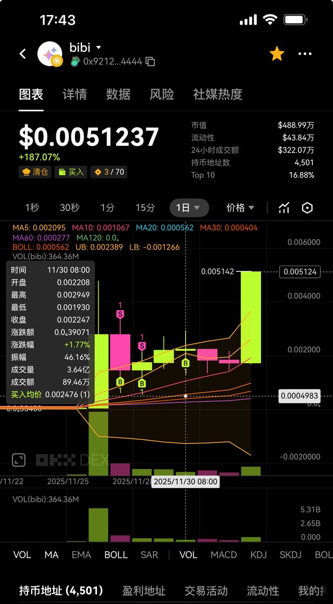 熬夜到三点才上线 $BIBI 感觉洗掉了很多预售 市值挺低的 看看他怎么骚操作吧 #DYOR