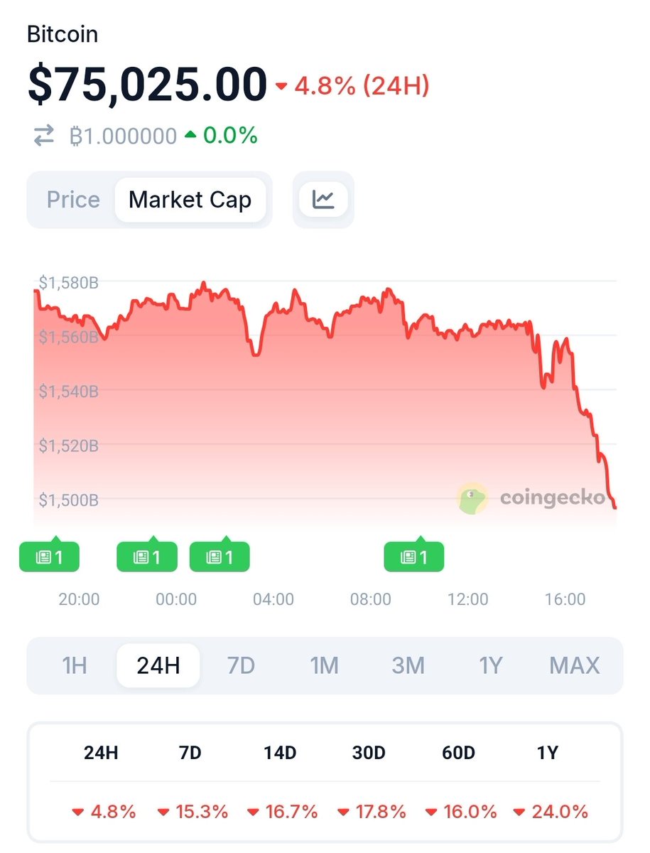 昨晚到今天凌晨加密市场再次来了一波下探, $BTC 下探 72 开头的价格后回升目前回升到76666 美元;