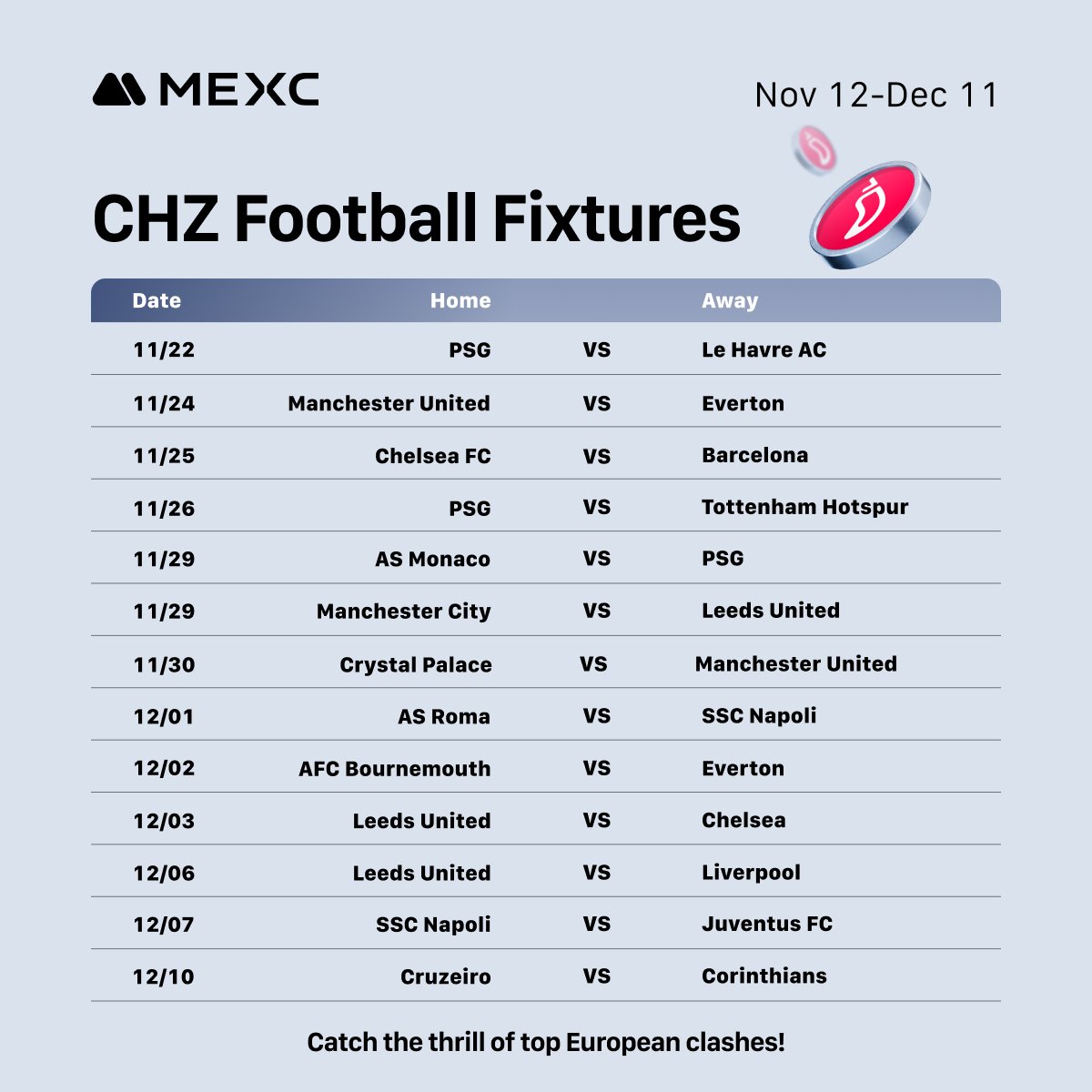 🌶️ The $CHZ Frenzy Ignites: Your Ultimate Football Calendar! Which squad's got your heart racing? Drop your favourite team below!👇