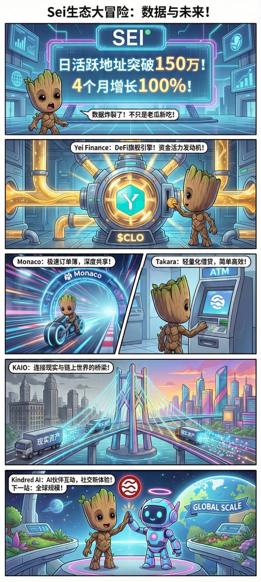 我在推特上划水,看到刷屏都在说@SeiNetwork生态最近特别活跃,我心里还嘀咕,难道这不是早就知道的事情了吗😂?因为sei最近一年来建设一直都很屌。大家可以去看一下Sei的官方上的数据,目前平均每日活跃地址已经超过 150 万,4 个月内增长了整整 100%。这活跃度确实有点东西!!好奇怎么涨了这么多,我去扒了一下几个sei生态比较典型的项目给兄弟讲一讲 先从最近热度非常高 市场表现很好的 的 $CLO 说起。@YeiFinance  可以说是 Sei 生态的 DeFi 旗舰。它不只是一个借贷平台,而是把存款、借贷、流动性挖矿、策略循环都整合在一起。比如你存 USDT 或 USDC,不光能赚利息,还能把资产放进不同策略里循环增值。借款也很灵活,可以做杠杆或者套利,闪电贷也支持。最关键的是,它把链上的资金流动性拉得很满,有了它,生态里的 DeFi 活跃度直接就上去了。可以说 YeiFinance 就是 Sei 上资金活力的发动机。 然后是  @MonacoOnSei,这东西像生态里的幕后发动机。它是一个去中心化的订单簿基础设施(CLOB),专门给交易用的。你平时在链上交易可能会遇到滑点大、深度不够的问题,但 Monaco 提供了共享流动性池,交易深度很足,结算又快,基本看不到延迟。不管是做大额交易、套利,还是普通交易员操作,体验都顺滑到让人忘记这是链上交易。它还能让新项目和钱包直接接入生态的流动性池,降低了新玩法上线的门槛。 @TakaraLend则是轻量化借贷的好帮手。它跟 YeiFinance 有些不同,更专注于简单、高效的资金进出。想借钱、存钱,操作简单快速,还能用链上预言机保证利率和安全性。它不是 DeFi 巨头,而是让普通用户和小资金也能轻松参与借贷市场,把生态的资金使用效率提高了一个档次。 @KAIO_xyz 的定位更高级,它负责把现实世界的资产搬到链上。机构基金、合规理财、甚至一些大型债券产品,都可以通过 KAIO 在 Sei 上进行代币化和交易。也就是说,不只是普通 DeFi 用户赚钱,机构的钱也能在链上运作。KAIO 让 Sei 不只是一个普通的链,而是把传统金融和链上世界连接起来的桥梁。 最后是@Kindred_AI ,完全是另一种玩法。它把 AI 技术和 Web3 消费应用结合,让用户拥有可互动、可交易、可社交的链上 AI 角色。普通用户每天进链,不只是看盘、存钱,还能和 AI 小伙伴互动、收集奖励。它把链上的体验延伸到日常生活层,让用户习惯每天登录生态。 在 @SeiNetwork生态里,大家能看到现在市场想要的一切:稳定币、支付、游戏、消费者应用、RWA……每个板块都有代表性项目,各自做自己的事,但又互相加成,强强联合。下一站是什么?显而易见:全球规模化,大家都会主动来用SEI来建设!