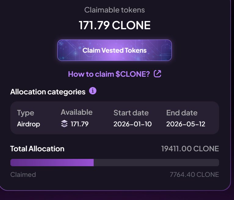 The highly anticipated moment is almost here! $CLONE will be listed on December 10th, 2025. Staking rewards. Exchanges. The most bullish surprise to date. Exciting announcements in the coming weeks will elevate $CLONE to new heights.