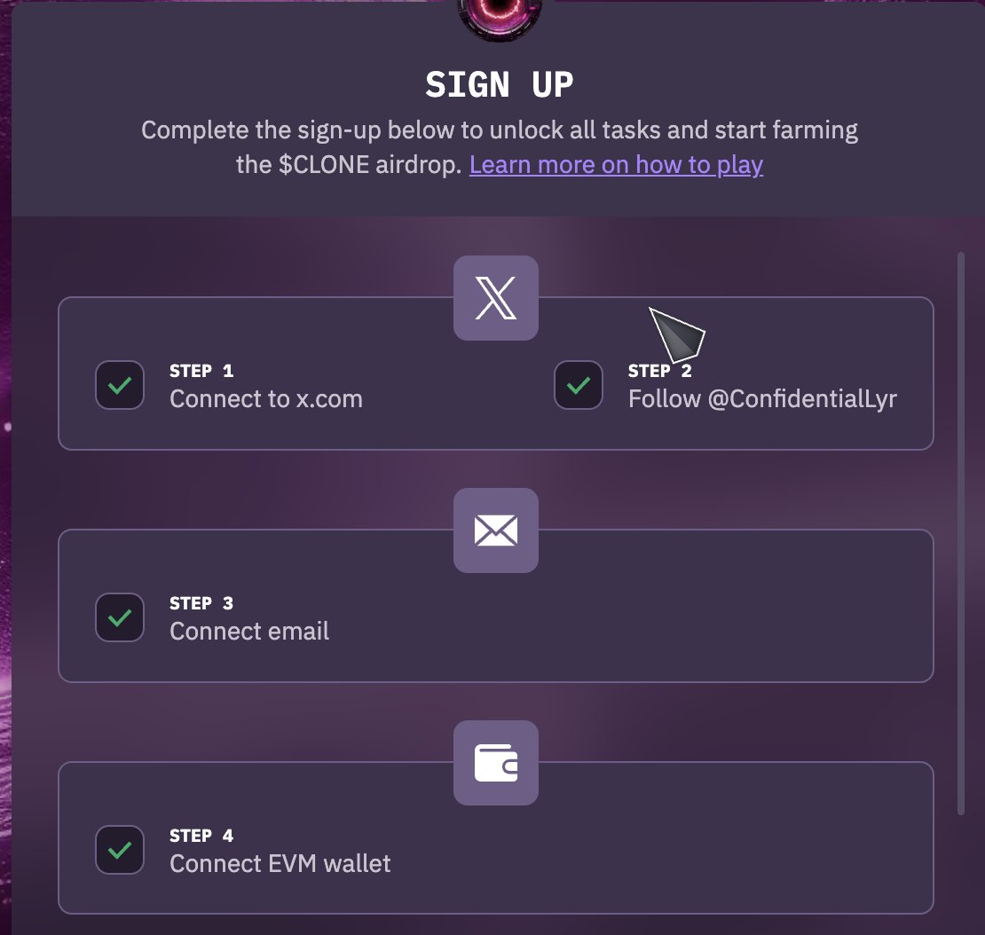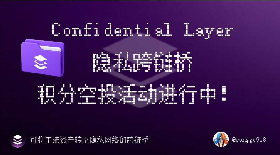 【Confidential Layer 空投指南:隐私赛道要来一波大的? $CLONE !!!🪂】 最近隐私方向越来越热,而 Confidential Layer (@ConfidentialLyr) 的 TGE 感觉已经在倒计时了。 我自己实测了一下活动任务,流程不复杂,而且桥一次大概 5 美元 ≈ 1 积分,成本可控。 空投指南⬇️⬇️⬇️ 1️⃣ 连接钱包 👉 https://t.co/YOPhOEsl25 2️⃣ 点击「Start earning now」完成基础任务 3️⃣ 在「CL BRIDGE」里开始桥接 ⚠️ 注意两个关键点: 一定要通过 @Bridgeless_com,否则不算积分 如果从 Bridgeless 开桥,需要准备一点 gas(1 美元左右即可) gas 获取:https://t.co/Jd9jZmInyV 我自己测试的结果是: 跨 5 美元 ≈ 拿到 1 CL1 积分,属于成本不高、能试的那种。 🎁 额外 Bonus 跨完之后,你还能在 Social 任务里领取 Guardians 积分。 这些积分可以在 exploration 页面 抽卡(卡牌扭蛋),顺便多薅一点收益。 🔍 Confidential Layer 是什么? 它是一个隐私桥,让你把 BTC / ETH / SOL / Base 等链上的资产,整体搬进隐私空间。 简单理解就是: “LayerZero + Wormhole 的隐私加强版”。 隐私市场本身规模就不小: 现有隐私赛道:560 亿美元+ 他们可覆盖的资产规模:超过 2 万亿美元 潜力摆在那里。 再加上 2025 年 11 月 Vitalik 给隐私类应用捐了 256 ETH,让整个隐私领域又被重新点亮。 在这种节奏下,Confidential Layer 选择现在 TGE,我觉得时间点非常合适。