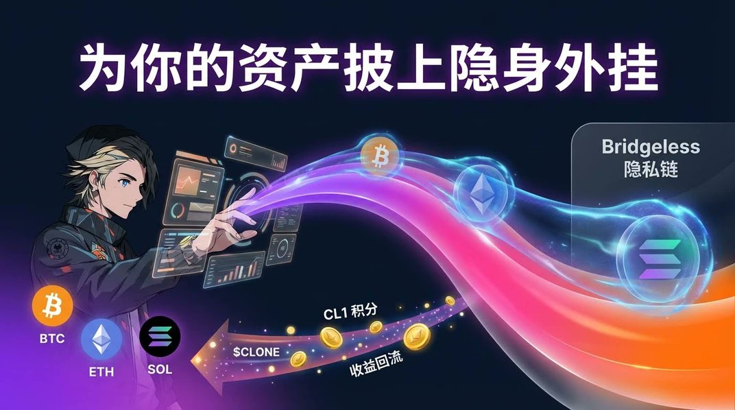 隐私这事儿,最近越想越觉得有意思。它早就不是极客圈的小众话题了,连Andrew Tate都开始严肃讨论链上隐私,说明它已经戳中了大众真正的痛点,谁都不想自己的资产和交易记录像玻璃一样被看得一清二楚 市场也在验证这一点,熊市里很多叙事都熄火了,但隐私赛道依然坚挺,这很能说明问题,大家开始用真金白银投票寻找解决方案,但以前的方案总让我觉得有点牺牲感,比如你要用隐私币,就得把手上的BTC、ETH换成另一种资产,过程麻烦,心里也不踏实,直到我仔细研究了 @ConfidentialLyr Confidential Layer ,才觉得他们找到了一个很聪明的切入点 他们的核心思路很简单但很关键,让你现有的主流资产比如BTC、ETH、SOL直接获得隐私能力,而不是让你去换一个陌生的隐私币,你可以把它想象成一个隐私外挂或隐私层,就像给一辆车贴上了单向透视膜,车还是那辆车,但外面的人看不清里面了,这解决了既要又要的难题,既想持有自己信任的主流资产,又不想暴露财务状况 技术上看它像是一个专为隐私设计的跨链桥,类似LayerZero,但专注解决隐私问题,更吸引我的是它的经济模型,40%的桥接费用会返还给 $CLONE 的质押者,这相当于把协议的发展红利直接分享给社区,让早期支持者能共享增长,这个设计很有诚意 目前,他们正在进行的 Bridge-to-Earn 活动,是一个不错的早期参与窗口,通过桥接资产就能积累积分,换取未来的 $CLONE 代币,我理解下来,关键规则就三点,划个重点: 传送门: https://t.co/syZkzAVdh6 1. 钱包要一致:进出资产必须是同一个连接的钱包地址 2. 路径要对:桥接必须经过 Bridgeless 这条链(比如以太坊 → Bridgeless,或者反过来都行) 3. 多桥多赚:桥接的资产量越大,赚的积分越多 我觉得隐私正在从可选功能变为基础需求,Confidential Layer 这种不改变用户资产偏好的即贴即用模式,降低了隐私的使用门槛,可能会吸引大量圈内普通用户,如果你也认同隐私是下一个重要方向,那么这个正在搭建基础设施、并慷慨反馈早期用户的协议,值得你花点时间了解一下,你可以从他们的空投活动页面入手,亲自体验一下这个桥接即隐私的过程,体验往往比阅读十篇文章更有说服力