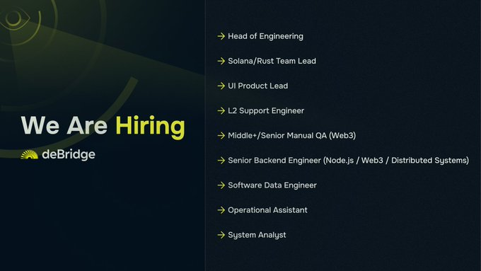 突然注意到Debridge @debridge 在招远程助理,大家可以去试试 https://t.co/lPlK5EskGn 招聘要求详情 https://t.co/ZR1ttfW5w2 所有的Web3项目只有有盈收能力的项目才能长久的活下去,这也是我一直很看好Debridge的原因——Debridge的营收很强,基于 DefiLlama 数据预计今年营收累计约一千多万美金,而且DeBridge 基金会将 100% 协议营收用于 $DBR 代币回购,通过 Reserve Fund 执行。