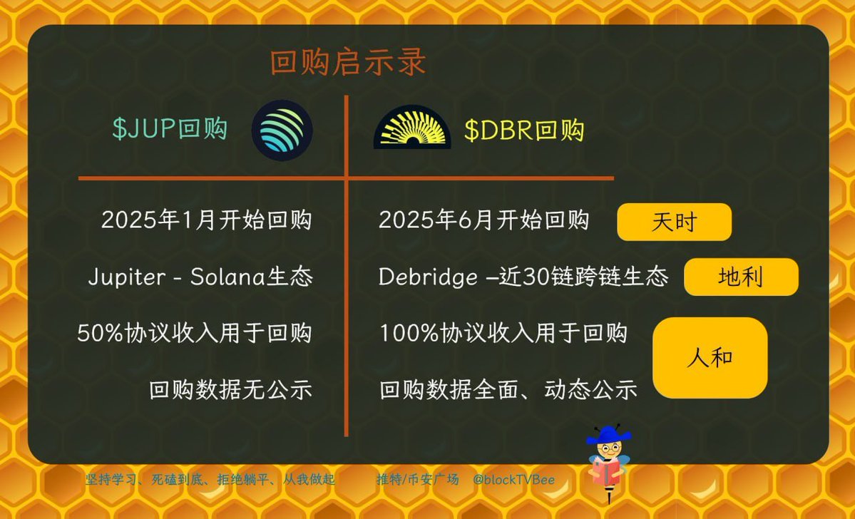 DeBridge @debridge 近期动态跟进 DeBridge @debridge 基础数据方面,全网总用户突破 100 万,链上活跃日均交易超过 1.1 万笔。之前储备金已经设立,并持续回购 $DBR ,其规模已达 3200 万美金,目前已经累计回购了接近 2% 的总量,市值超 320 万美金,过去 30 天跨链交易量达 8.5 亿美金,协议月度收入破 100 万美金,全数归入 DAO 国库,所以回购全部来自协议真实收入,deBridge 依然是目前稀缺的有储备金玩真实数据的一线产品。 平台功能方面 1、DeBridge Explorer 已经上线:现在可以一眼看到热门资产流向,还能追踪大批资金从 ETH 到 Solana、Base等等,一切数据都清清楚楚。 2、精准报价功能上线,跨链挂单时能提前知道实际到手资产,0 滑点、无差价。 3、新增集成HyperLend、Yaka Finance、Takara Lend 等 DeFi 应用,让资产到链后就能立即发挥效用。 产品基础合作方面 与 @TrustWallet 正式集成,2 亿下载量的钱包可直接调用 deBridge 实现跨链,流量端口进一步打开。同时上架 Solana dApp Store,Seeker 手机用户只需几步就能完成跨链。 而且最新一期的积分活动S3即将上线,同时质押机制正在设计中,将会在下半年上线,重点围绕协议安全与价值分润,兄弟们继续保持关注 deBridge 和 $DBR