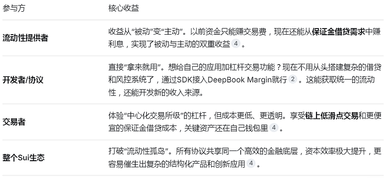 从现货到杠杆:DeepBook Margin解锁Sui生态千亿流动性 每次聊起 #DeFi,大家总喜欢围着收益率和热点项目转。但我觉得真正的长期机会,往往藏在那些被大家视为“基础设施”或“枯燥后端”的东西里。今天想分析的DeepBook Margin,正是这样一个藏在Sui生态“水电煤”层面的关键升级。 简单说,这是Sui官方核心团队Mysten Labs给他们的亲儿子 — — 核心流动性层DeepBook — — 做的一次大手术,让整个网络的交易从“现货”时代迈入了“杠杆”时代。 我们可以把DeepBook理解成Sui生态所有交易活动的“总引擎”。大多数Sui上的DeFi项目,背后撮合订单、提供流动性的都是它。自从主网上线,它已经默默处理了超过170亿美元的交易量。 但这个引擎以前主要是“现货”模式,功能比较单一。很多资本虽然进来了,但只能趴在池子里赚点被动的交易手续费。生态真正需要的下一阶段增长 — — 比如更复杂的衍生品、需要借入流动性的策略、更高的资本效率 — — 一直缺一个底层的“油门”。 现在,这个“油门”来了。 DeepBook Margin上线,意味着开发者现在可以直接调用一个完全在链上、可组合的保证金系统。用户可以通过它进行杠杆借贷和交易,而他们的资产始终是自托管的,链上透明,没有中心化交易所那些隔离风险。更关键的是,它背后依赖的是DeepBook那个已经汇聚了庞大资金的共享订单簿流动性,所以交易滑点能做到很低,资金费率也相对公平。 这听起来可能有点技术化,但本质是把一个静态的“交易池子”,变成了一个能产生主动收益、可以被反复利用的“金融资本”。这是Sui DeFi迄今为止最大的升级之一,因为它把网络从交易层,直接提升为了一个可编程的金融层。 来看这张表,就能理解它如何让生态里的每一方都受益: 这种设计最聪明的地方在于,它形成了一个“增长飞轮”:更多交易活动 → 更深的流动性 → 更优质的市场 → 吸引更多用户和开发者。 一个功能再美好,也得有扎实的基本盘和看得见的增长路径。从几个硬数据来看,DeepBook Margin这次升级,是站在一个相当成熟的肩膀上的。 技术底气足:Sui区块链本身的高性能是基石,让DeepBook的链上交易结算速度快至390毫秒,每日清算的交易额轻松超过1500万美元。 生态根基稳:DeepBook不是新兵,它已经是支持超过20个应用的核心后端。这次Margin功能一上线,立刻就有像Abyss Finance、DeepTrade这样的生态伙伴集成,说明需求是真实且迫切的。 激励设计巧:官方同步启动了 “DeepBook积分计划” ,所有通过支持保证金的应用进行交互的用户,都能自动累积积分。这些积分将在第一季度末转换为$DEEP代币。这不仅是给早期用户的福利,更是在给整个生态的冷启动“加燃料”,把用户、应用和DeepBook自身的利益绑在了一起。 更重要的是,这步棋符合Sui官方的顶层规划。Mysten Labs的联合创始人曾明确表示,在2026年,DeepBook推出保证金功能是Sui构建其完整端到端开发者平台(Sui StackStack)的关键拼图之一。这意味着,你现在看到的不是某个独立项目的更新,而是一个顶级公链在按既定蓝图,一块一块地拼上它金融基础设施的版图。 说到底,DeepBook Margin的价值,在于它把Sui生态的流动性从“一潭深水”变成了“一道活水”。它不再只是一个被使用的工具,而开始成为一个能创造收益、孵化创新的资本和生产资料平台。 对于投资者而言,关注点可以放在几个地方:一是 $DEEP 代币本身,作为这个新金融层的价值载体,其捕获生态增长红利的潜力;二是那些首批深度集成Margin功能的生态应用,它们可能借助这一基础设施获得产品体验上的代差优势;三是整个Sui链上DeFi活动数据(如总锁仓量TVL、衍生品交易量)是否会因此被撬动,进入新一轮增长周期。 技术的迭代或许无声,但资本和效率的流向却震耳欲聋。当一条高速公链终于配齐了专业级的金融“油门”和“方向盘”,它接下来的旅程,或许会比很多人想象得更快、更远。 @SuiNetwork @DeepBookonSui #SUI