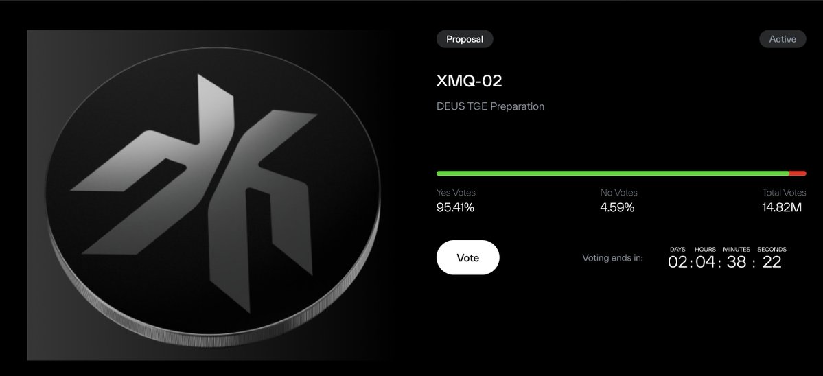 2️⃣由于之前的 XMQ-02 社区拍卖提前结束,目前有约 4950 万枚 DEUS 未被售出并留在“流动性与采用”池中。提案建议从中提取部分资金来支持 RCM 协议的开发