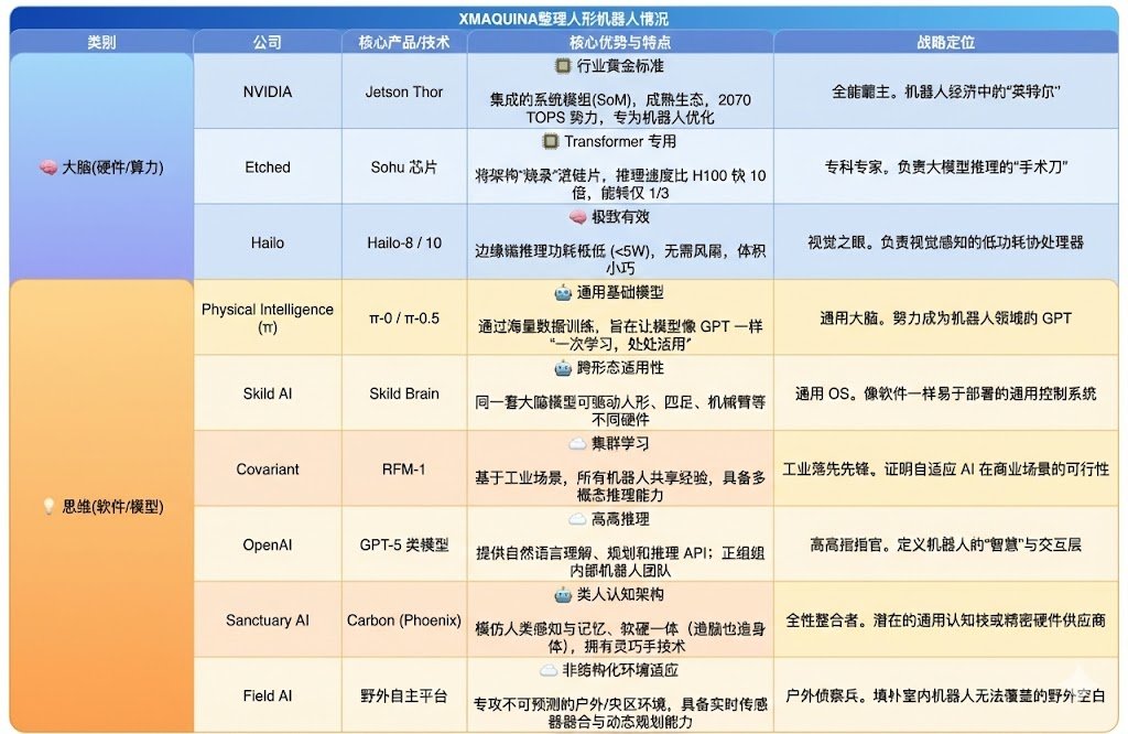 我整理了一下在 @xmaquina 之前的文章中提到了所有的在搞人形机器人的巨头公司及其开发的机器人特点