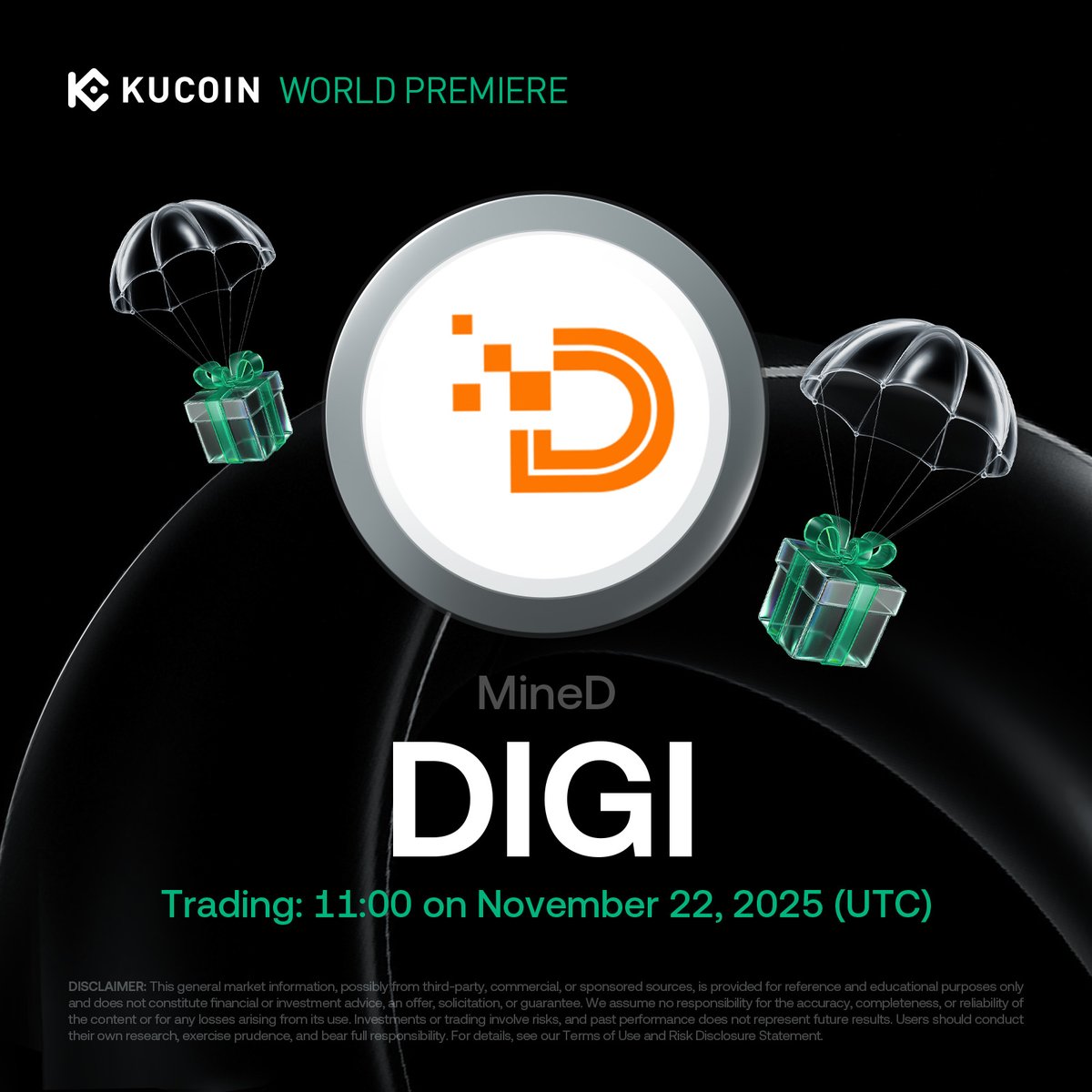 📢 World Premiere Listing: @DiGi_MineD $DIGI is coming soon to #KuCoin! MineD is a Tap-to-Earn mining game built for instant play through Telegram Mini App, featuring a streamlined 5×5 board where players uncover gems, earn points, and convert them into $DIGI through an integrated on-chain reward system. 📅 Trading starts: November 22, 2025, 11:00 (UTC) 💰 Deposits effective immediately: BSC-BEP20 🔁 Pair: DIGI/USDT 💰HODLer Airdrops Details: https://t.co/am40L3uC6Q #KuListing #DIGI