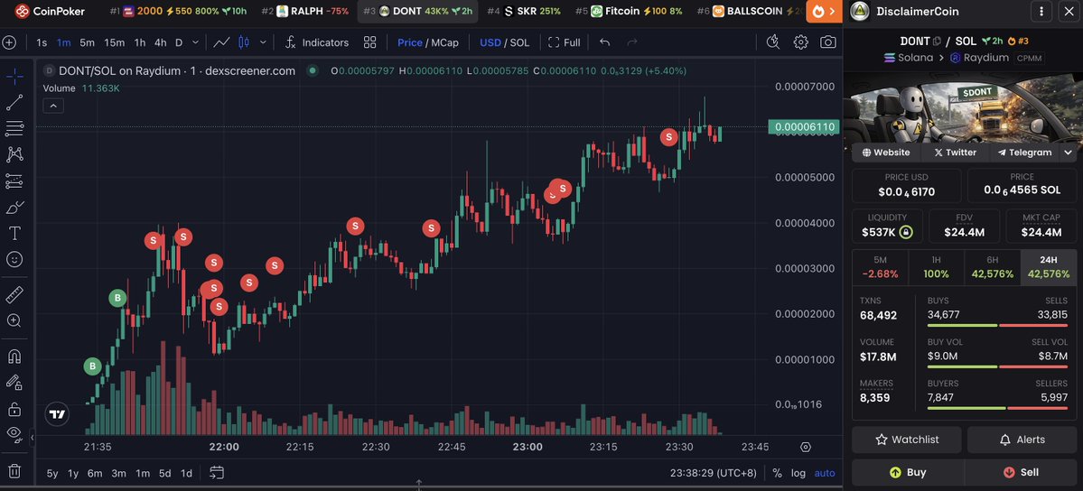Someone turned $4.1K into $1.13M on $DONT in just 3 hours — a 276× return!