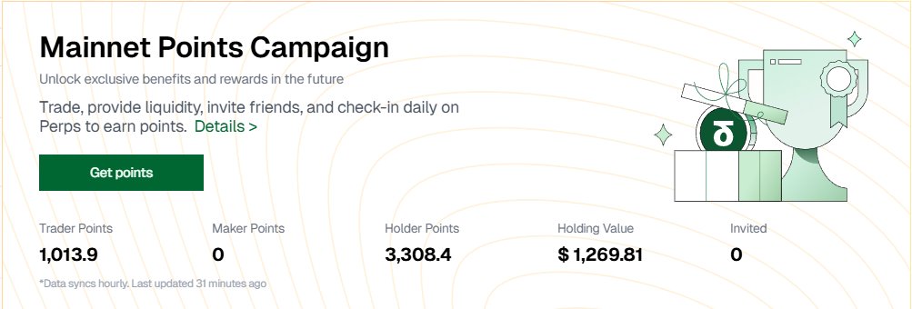 一個靠自動生息的 $DUSD 穩定幣驅動的高性能永續合約 DEX,已經實打實跑在主網上。積分活動正在跑,手續費直接回流生態的循環機製也早就嵌在裏面——這不是畫餅,是代碼裏寫好的規則。