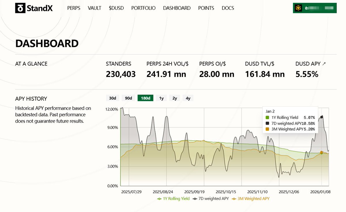 On StandX, the asset you deposit is DUSD, which generates yield on its own.
