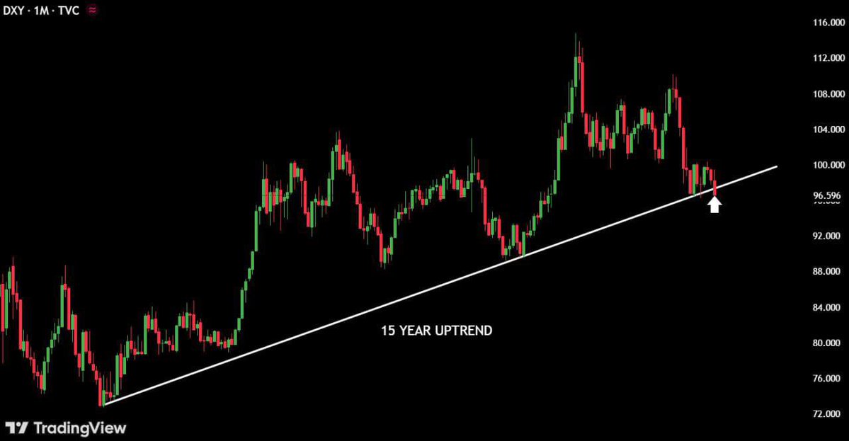 ⚠️ US DOLLAR $DXY at 14 Year Support levels ‼️ about to break it ⚠️