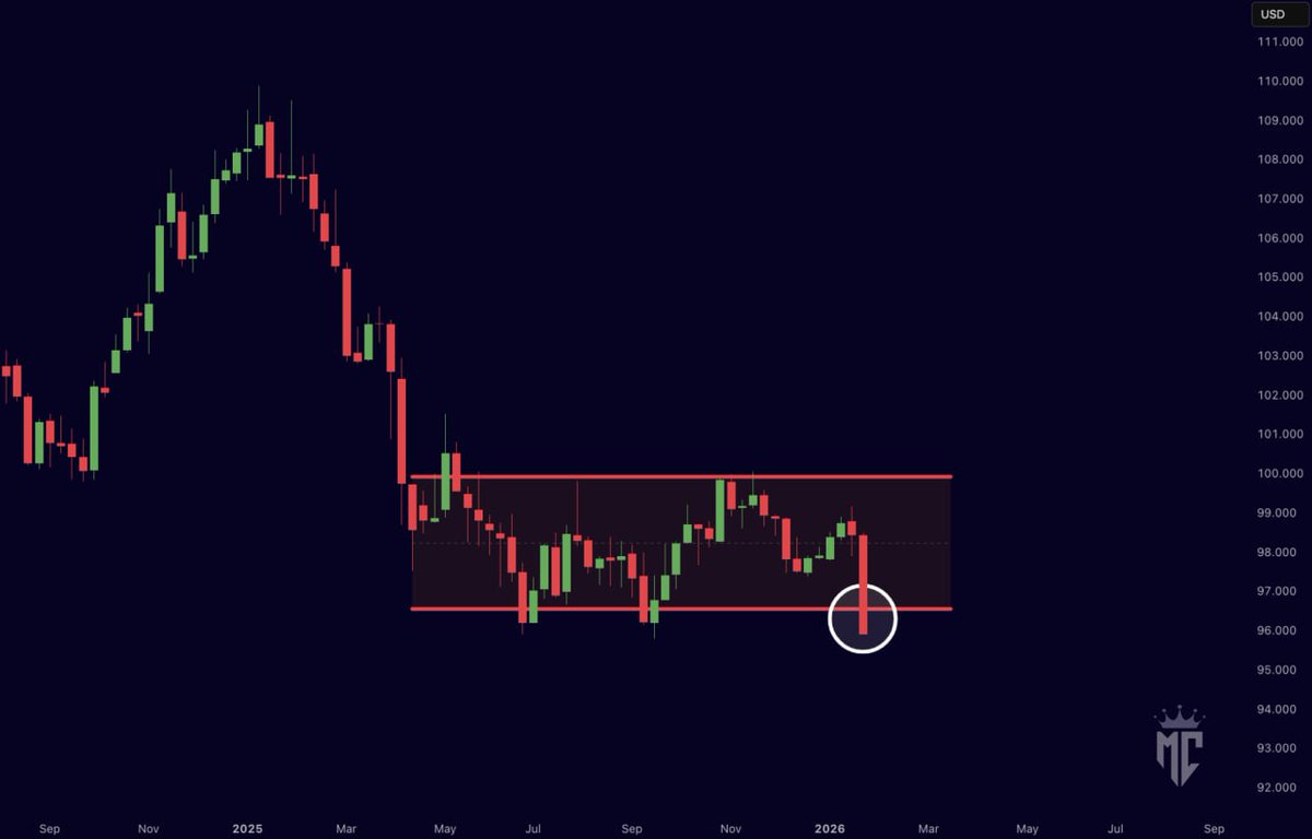 💥 Dollar Index $DXY is dumping — down 11% since January.