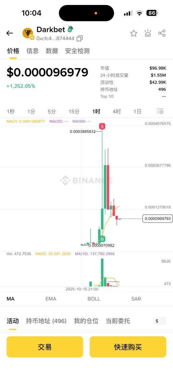 基于昨晚 CZ的 推文 .重点看市场预言机赛道的项目。 快速整理 4个标的 $TTAI $MEFFAI $Darkbet $bnbbet 4中1 $darkbet 580K-4.7M 0xcfc416b8d7937e77ac2e461afe1abea34d874444 感觉bsc的 ai 风🌬️要起来了 更多密码信号进频道👇