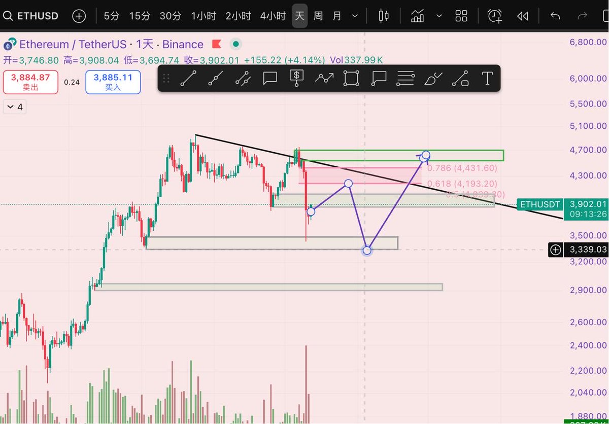 2)啰嗦这么多,就一个 目前 ETH 继续看涨, 特别在 BTC 如果构建横盘情况下。