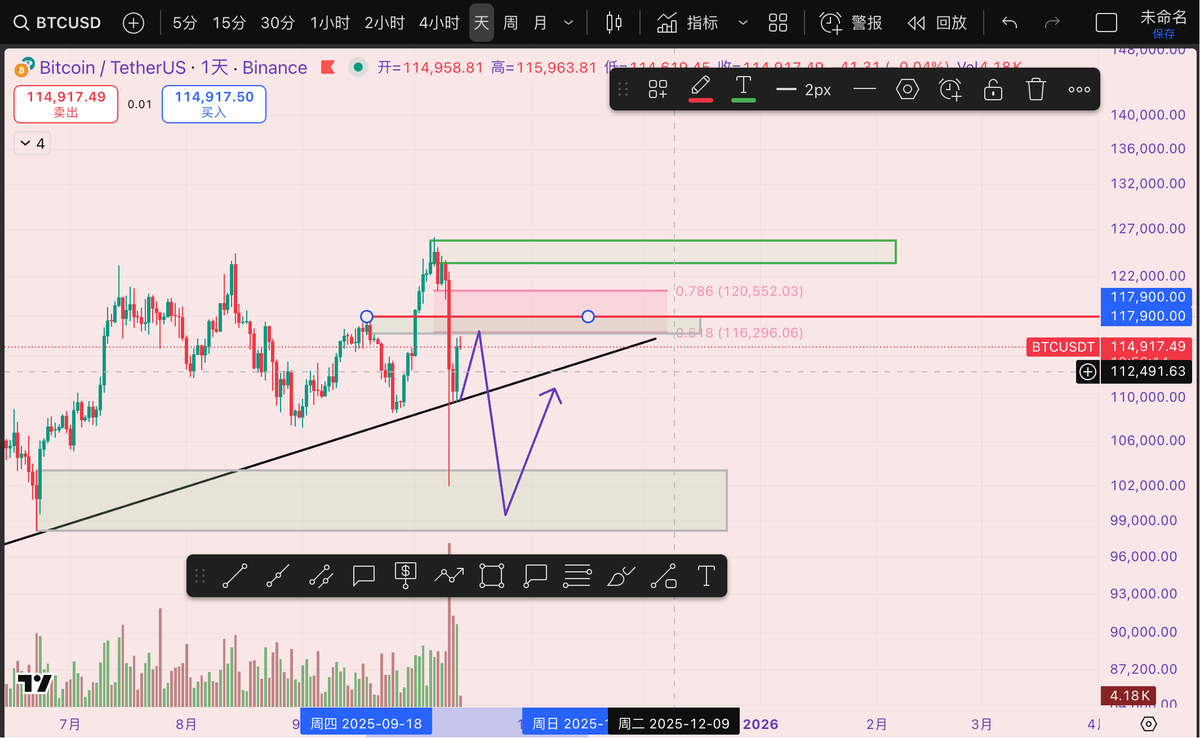然后大家来讲, 整个大区间的成交 poc 在1800 ,这也对应@Murphychen888 兄讲的主要的购买者是信仰买家。