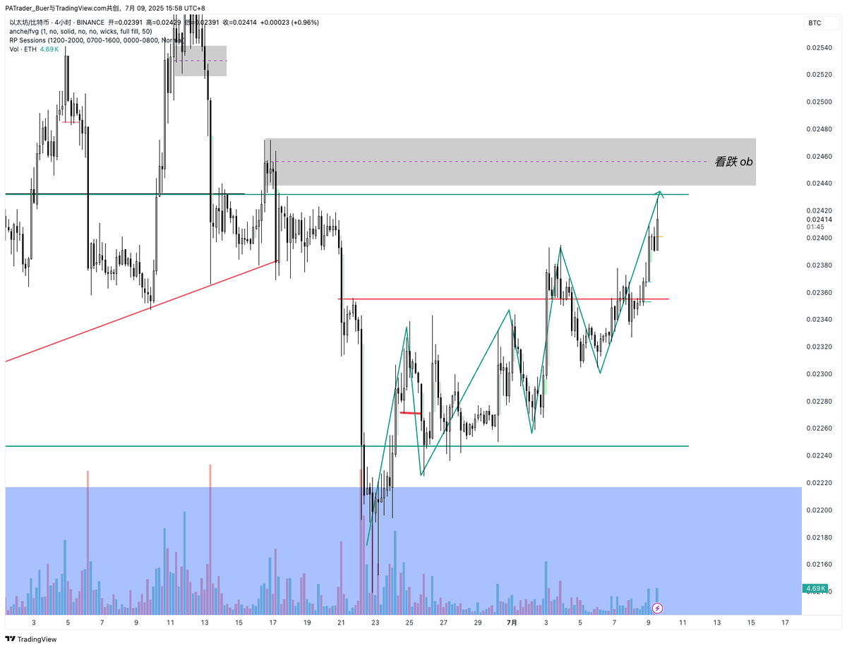 上方来讲,先看对range——H 继续测试,目标看跌低 ob , 到 0.029 大概 13% ,对比 ETH 正好到 3200。
