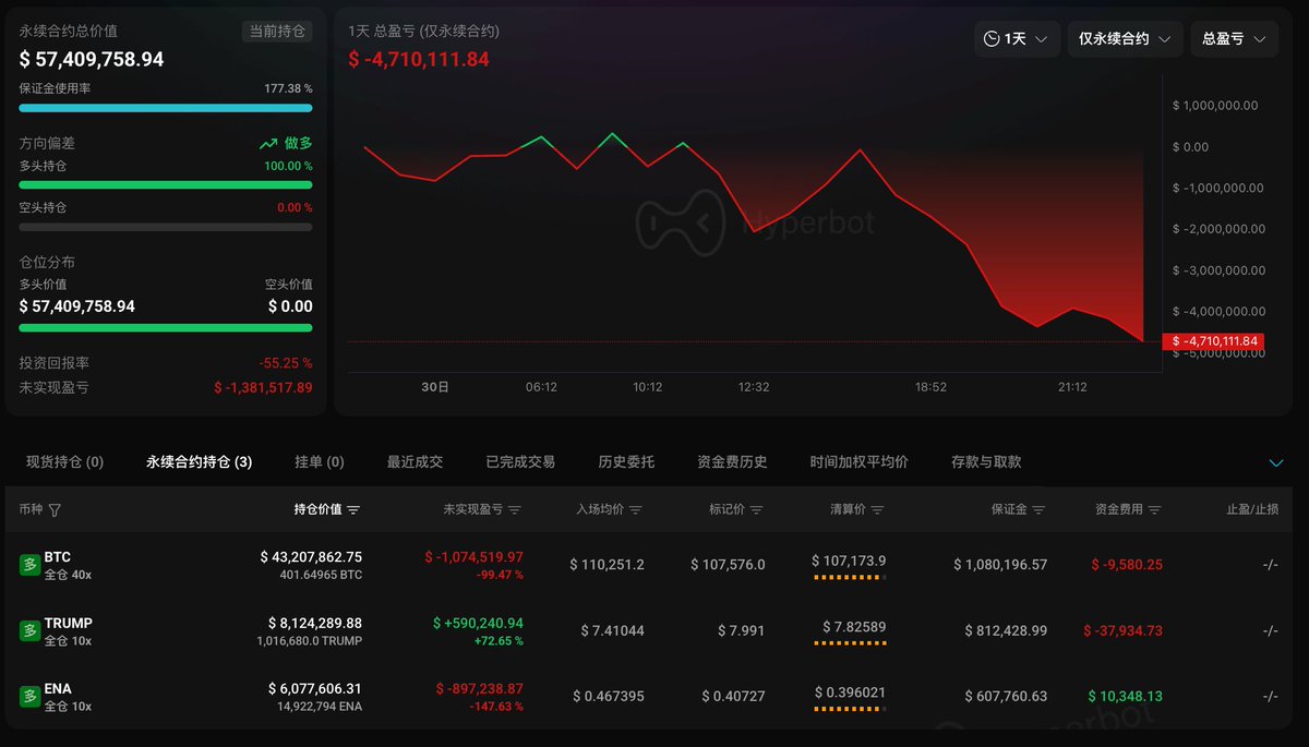 目前两个亏损的仓位仍价值 4926 万美元,且清算空间非常小,随时有被迫止损的风险…