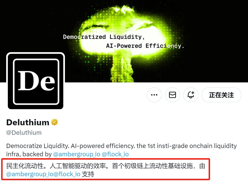 链上流动性基础设施 Deluthium @Deluthium 由 @ambergroup_io 和 @flock_io 提供支持,目前可以参与撸挖矿活动获得Deluthium积分和 FLock 代币