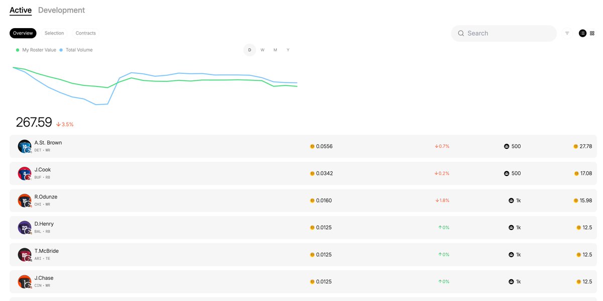 加上本次打新 NFL 创世球员包有 2-2.5 倍 利润,基本弥补了前段时间足球股份的跌幅。市场寒冷的这段时间里,每天耕种和收获足球与 NFL 带给我的喜悦🤓