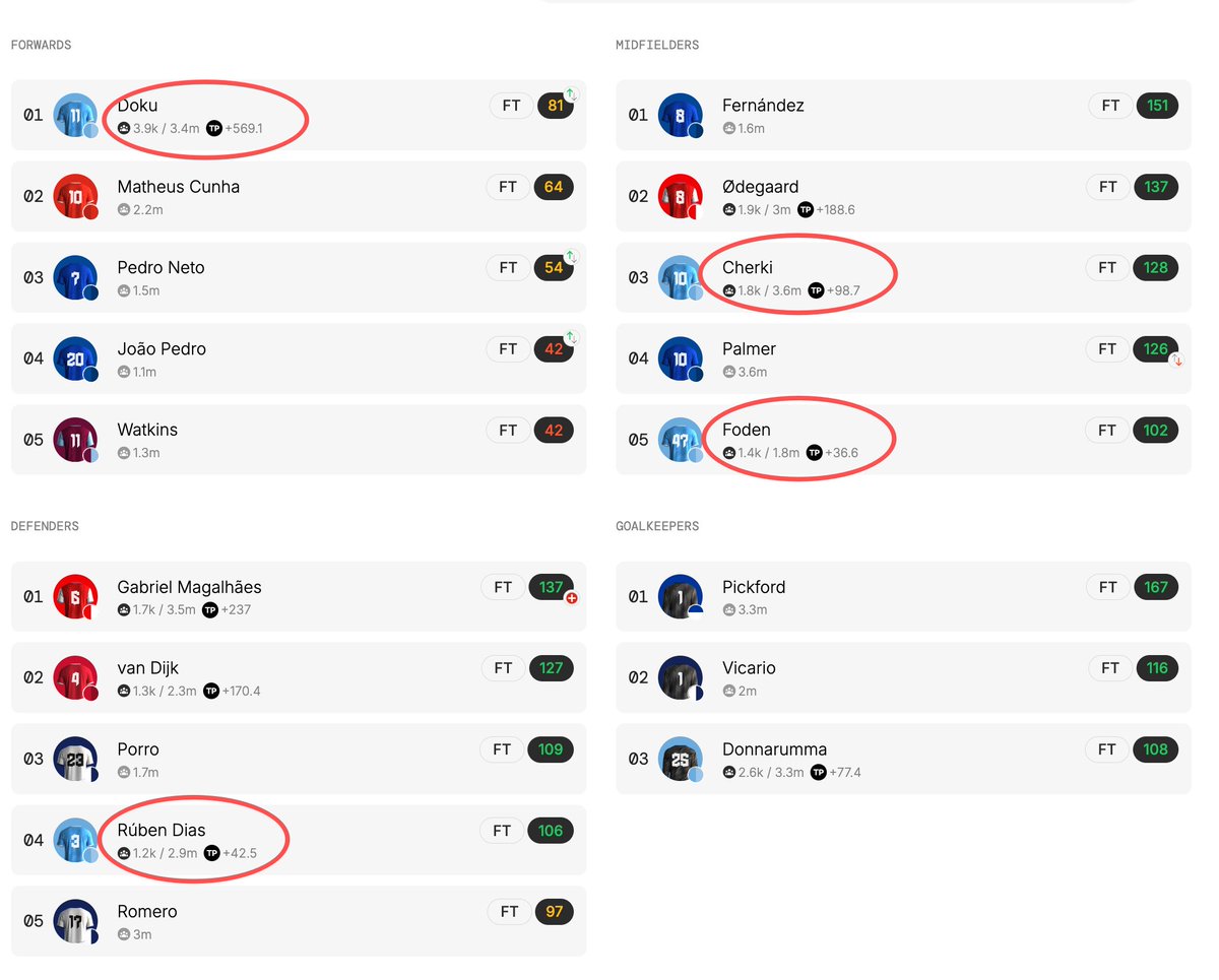 本轮 @footballdotfun 奖励榜上,上周用数据科学发掘新调增的球员 TP 效率满意✌️:
