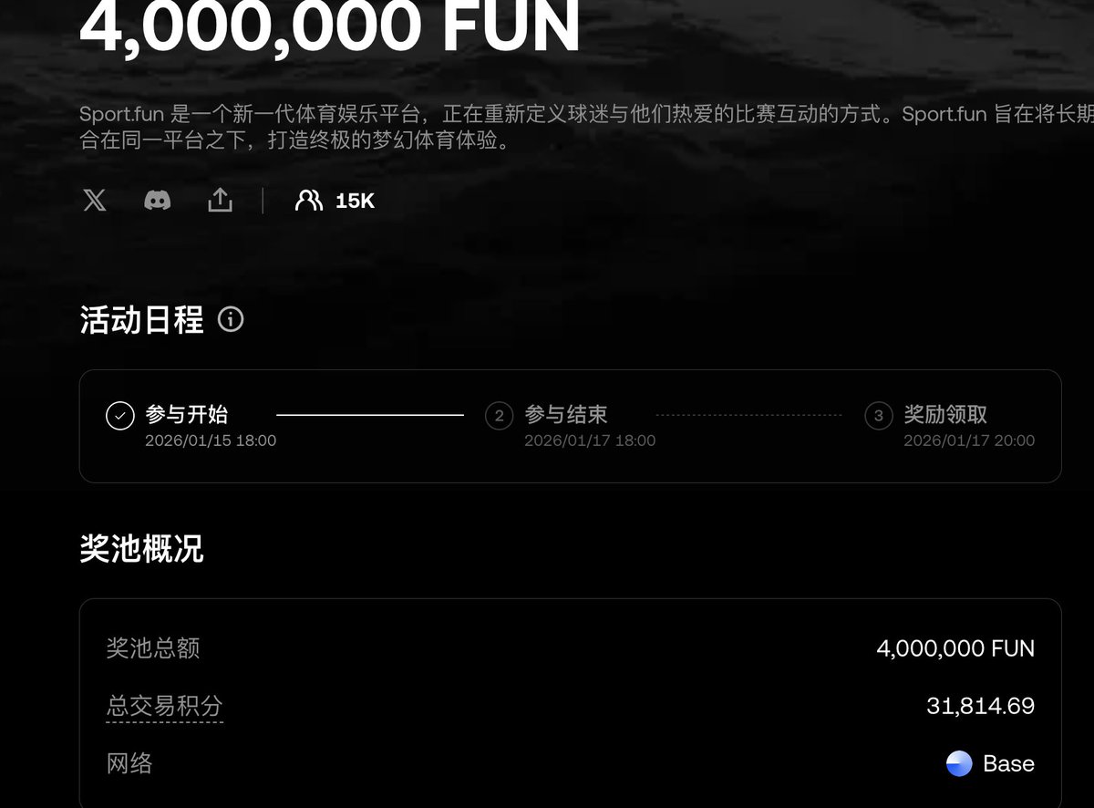 撸了四个月,之前 coinbase 官宣的 @footballdotfun 终于要 TGE 了:2026.01.15 结算 $FUN ✌️
