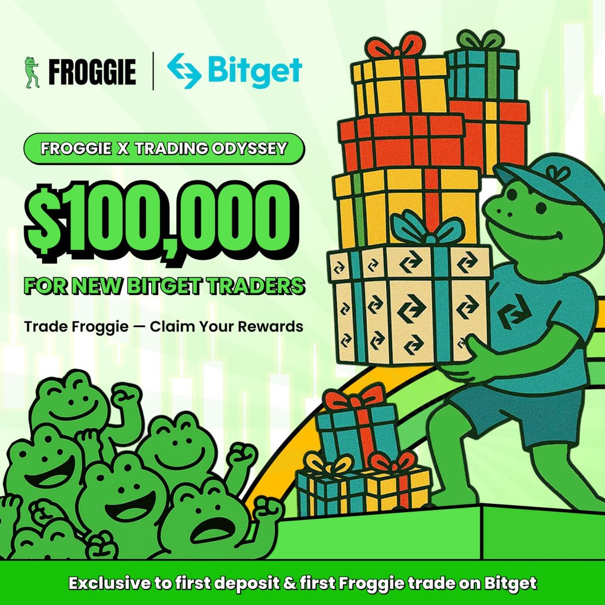 现在 好消息来了:Bitget 和 Froggie 联手 $100K 新用户福利活动!