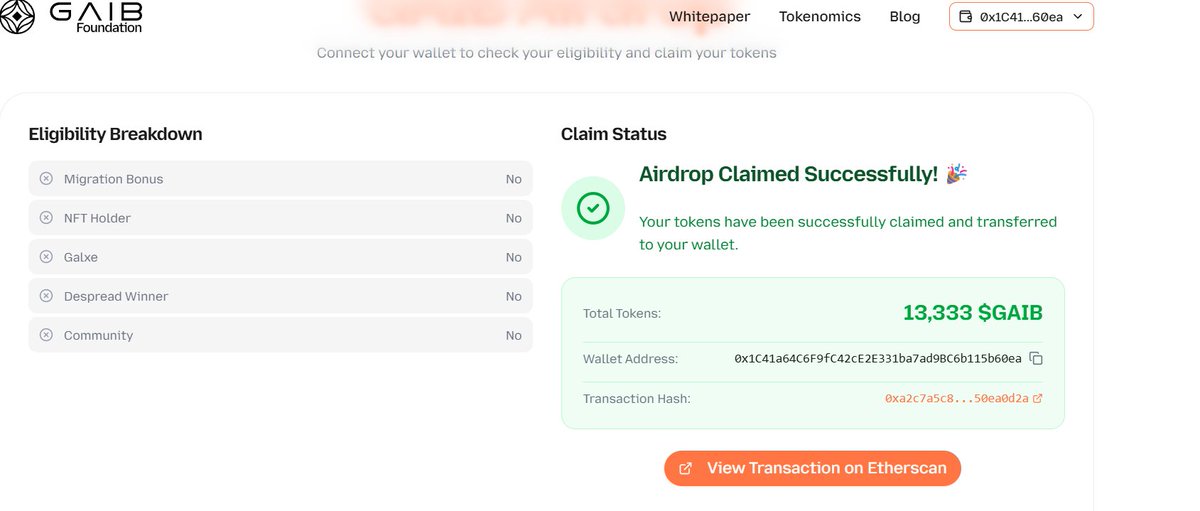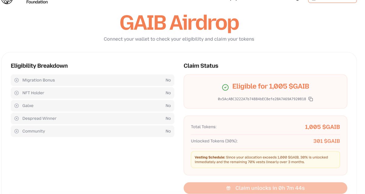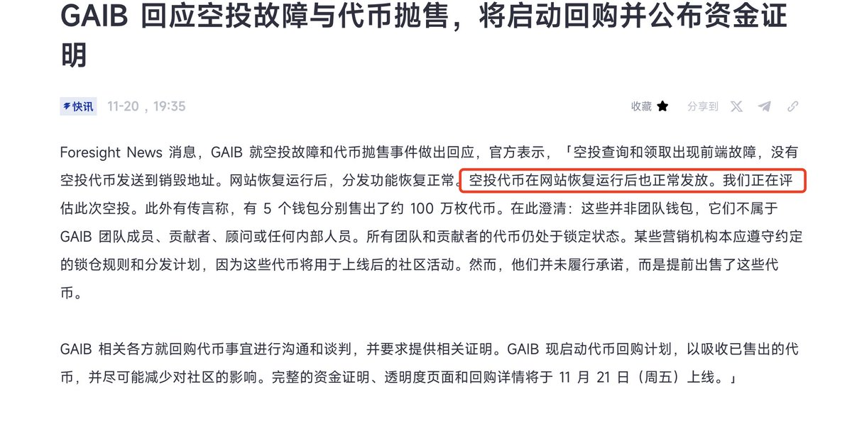 兄弟们再检查以下 $GAIB 的空投,官方 @gaib_ai 补发了一些,然后剩下的线性释放