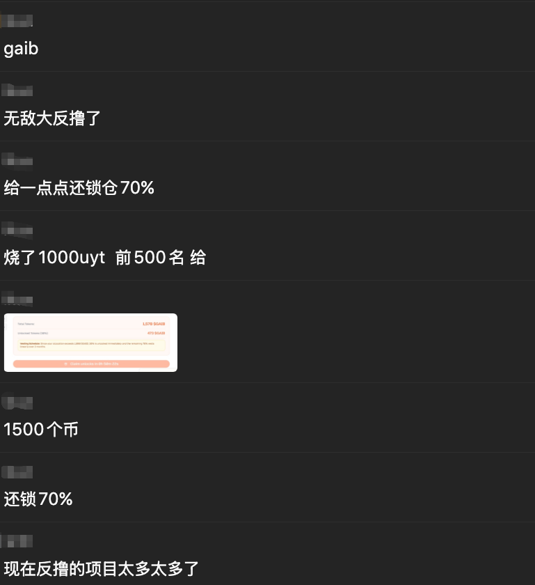 亏麻了. GAIB项目方死一个户口本吧 @gaib_ai 5月份存了1wu的gaib。 结果只有1005个 $GAIB 奖励。70%还锁仓。相当于只能卖60U。 利息就不谈了,还不够GAS多的。 而且这个项目方最可恶的一点就是。 规则里写:收到超过 1000 个代币的钱包将在 TGE 时完全解锁 30%,其余 70%将锁仓 90 天。 故意给我1005个代币,锁我90天。