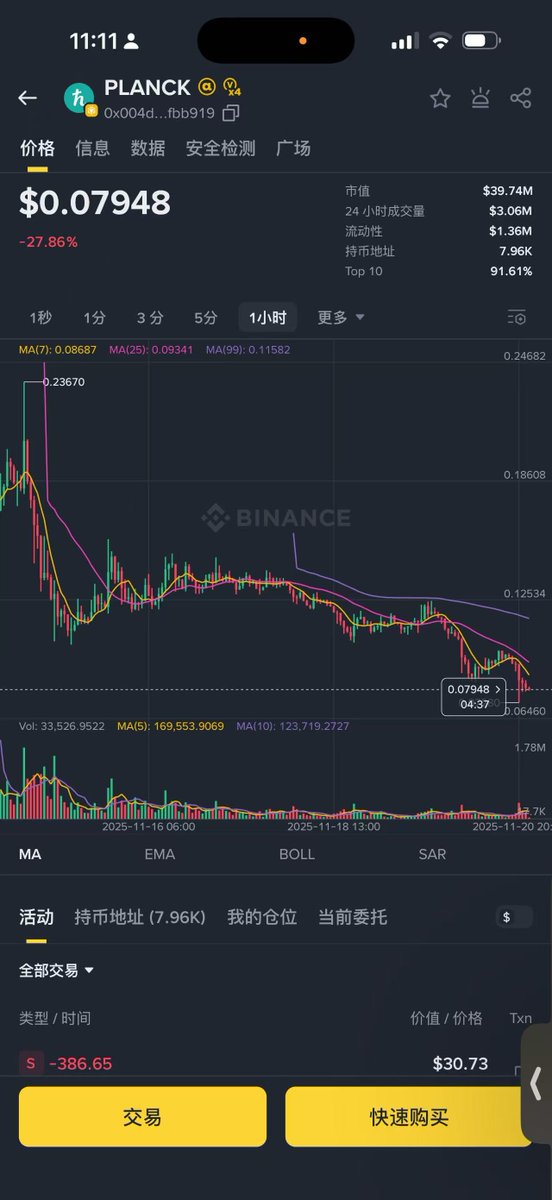 知道为啥 $GAIB 急急忙忙出声明洗白吗?看看 $PLANCK ,这是本来应该11月13号就要上合约的币。12号公告都出来了,结果13号当天宣布被推迟,而且一推就推到现在都没动静。 币价维持了一段时间后拉稀了,今天直接跌了29%。而 $GAIB 是近期第二个被推迟的币,且同样没有公告推迟多久。 我估计是因为现在币安对上合约的规则做了调整,应该是增加了一些标准,如果没有达到就会一直推迟,直到符合考核。 一个币有没有合约那估值、流动性和玩法都是天差地别,说不好听的只有个Alpha项目方和VC根本没法把手里的币出掉,高控也没用,全烂手里。 眼看着天地都拜了,宾客都请了,结果不给入洞房, @gaib_ai 不着急才怪😂