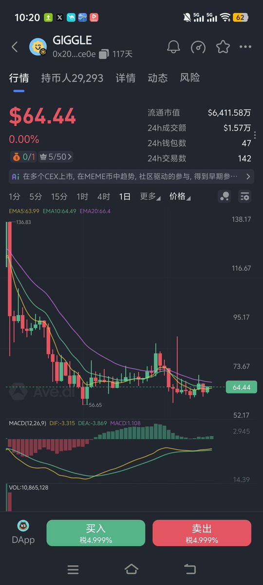 这玩意压根不适合 合约交易 狗叫一声就乱动一波 没法做 隔壁的 $giggle 倒是爽撸