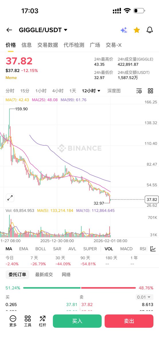 没有市场情绪的波动那来暴富的机遇。 第一个中文Meme如果不像个样,那么下个下个下下个中文Meme大家对他的期望值可想而知。 作为领头羊暴涨50%以上了继续拿稳 这一次都有属于自己的币安人生。 $GIGGLE 紧随其后。