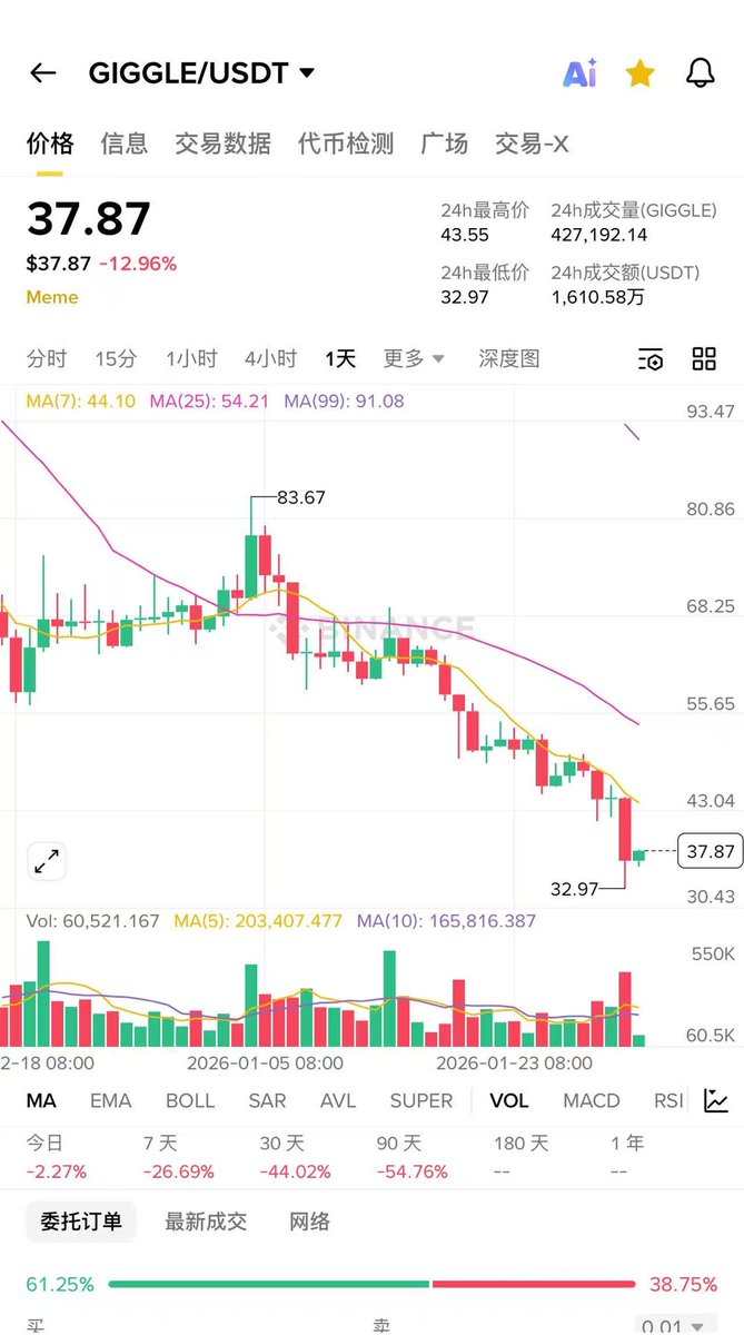 事实证明拉盘才是硬道理,我踏马来了和币安人生形成了鲜明对比,虽然币安人生有cz发书名的预期,作为中文龙头是真拉垮,一直跌跌不休,韭菜都快被割哭了,完全就是下一个 $giggle 走势 踏马这个币完全是庄家自嗨拉盘(疑似被gate控住了),bsc链上完全没有得到啥反馈,链上都跑不出几个好项目,当然和大盘下跌了也有关系。 可能只有等待二月底cz发书才会带来一波行情了。