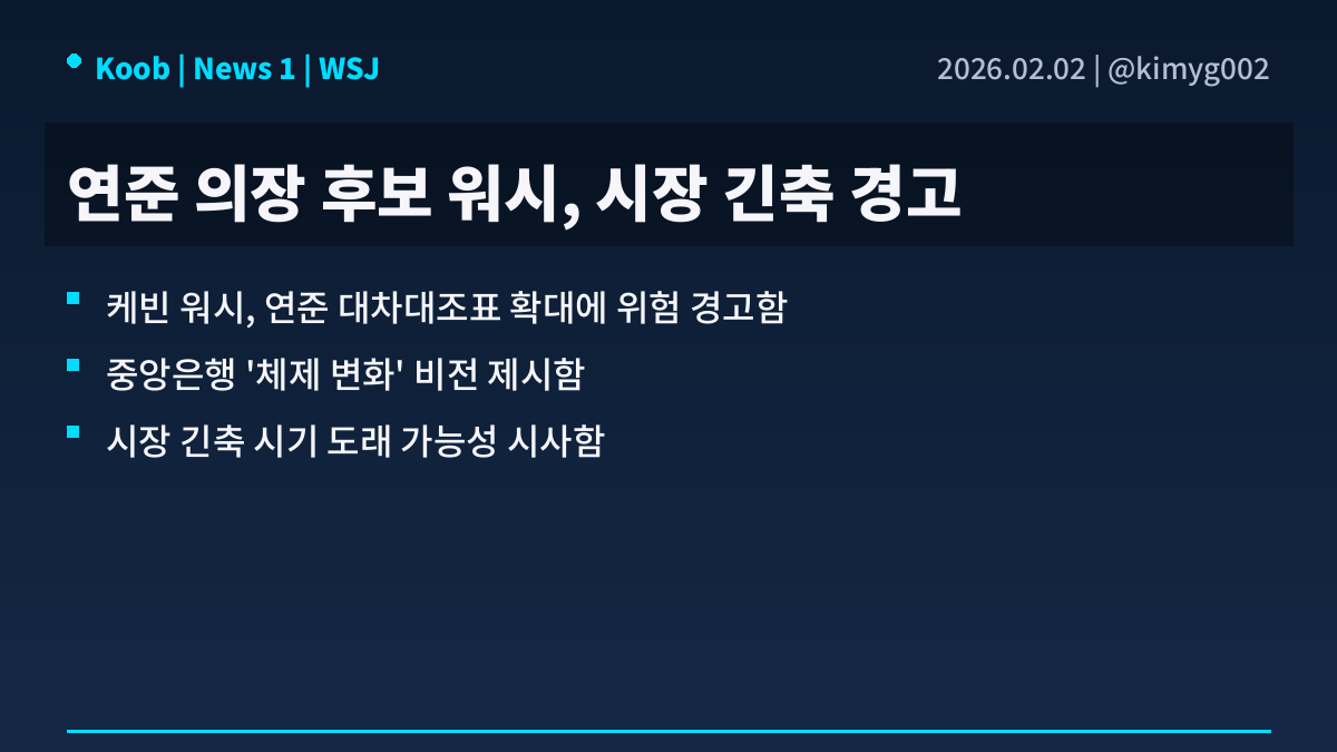 1️⃣ 케빈 워시, 연준 체제 변화 및 시장 긴축 전망