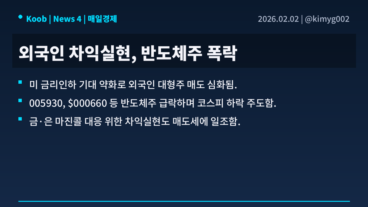 • 미 금리인하 기대 꺾이며 외국인 매도세 집중.