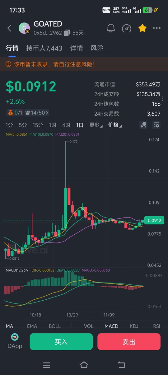 0x5d7909f951436d4e6974d841316057df3a622962 刚朋友让我买点这个, $Goated 这个币我有私募,都没回本 Metis这么牛逼,它儿子好拉胯