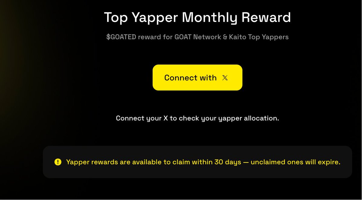 少数即使是TGE以后也在持续搞事情的项目 @GOATRollup 实在话,如果想要判断一个项目质量 大家就看起推特频率、合作推动速度等细节就行 差异在哪里? 有没有TGE前很快,TGE后明显节奏变慢 这种项目就不能参与 GOAT Network 就属于那种TGE后明显加快速度的项目 这不是第四季活动来了 🙋如何获得奖励,方式主要是4种 1️⃣在 https://t.co/83n5ZGsACD 上进行交易和提供流动性 具体积分细节为 永续合约交易量:每交易1美元获得5积分(买卖双向计算) 已实现净收益:每盈利1美元获得10积分(扣除手续费后) 流动性提供:1美元·小时=0.1积分(按小时累计) 2️⃣在 https://t.co/bCbcS5P5wr 平台交易 GOATED 代币 每日门槛:日累计交易量≥1 GOATED后开始计分 积分公式:1 GOATED = 0.26积分(达到门槛后当日全部交易量计入) 3️⃣跨链桥积分活动 最低限额:BTC≥0.0001、BTCB≥0.0001、GOATED≥50、DOGEB≥50 支持链:比特币、BNB智能链、以太坊 4️⃣参与全新 GOAT 幸运抽奖消耗积分 幸运抽奖作为本季的核心创新,建立了完整的游戏化激励循环: 解锁条件:每日在OKU完成≥1笔GOATED交易 消耗成本:200积分=1次抽奖 每日上限:每账户最多100次 奖品类型:BTC、GOATED、USDT、积分等 ➡️如果大家测试的时候就能发现,这一季跟之前有点不一样 引入了一个“消耗 = 积分”的玩法 并且抽奖获得的积分可在当日重复使用,同时也会计入空投权重统计,这一设计极大提升了用户活跃度 对于用户来说:积分等于空投 + 潜在BTC等奖励 目前整个市场走向尚不明朗,从市场情绪上明显恐慌达到了极致 长期来看,都是预测 但是短期来看,应该有有反弹,今天也是这么走的 那 $GOATED 就是近期行情必须关注的代币