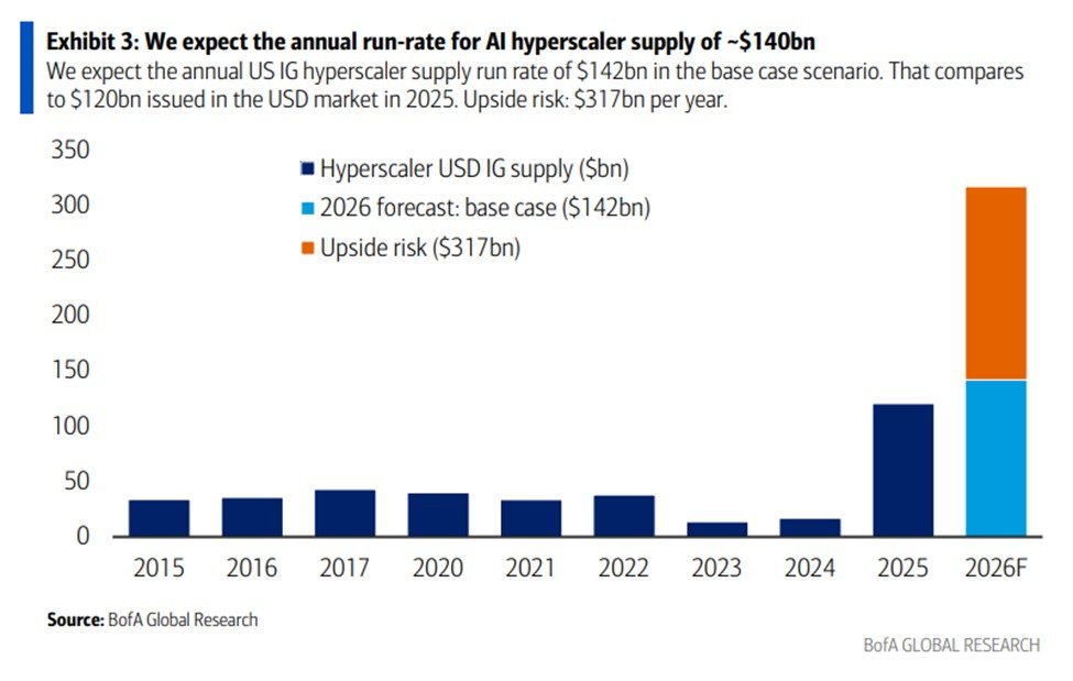 $META $GOOGL $AMZN $AAPL $MSFT 的资本支出 预计在 2026 年将超过 5000 亿美元,较 2023 年的 1590 亿美元大幅增长。